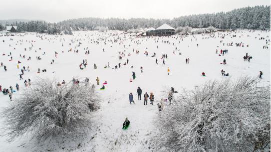 游客們熱情高漲,元旦節前兩日仙女山景區入園人數一度達到上限,為保障游客體驗度,景區及時采取限流分流措施,通過景區官方網站、微博、微信等網絡途徑,引導游客錯峰先行游覽天生三橋、龍水峽地縫、芙蓉洞、芙蓉江等景區,再進入仙女山賞雪、玩雪。