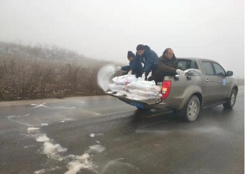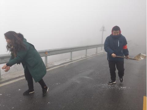 1月3日上午7點左右,清晨的仙女山還只是蒙蒙亮,而景區撒鹽除雪的工作人員已工作許久,他們分布在景區內各條交通要道上,有的甚至顧不上戴手套,徒手將鹽撒到路面。“沒辦法,今天早上的路面太滑了,我們必須趕在第一批游客上山之前把這個安全隱患解決掉。”一名工作人員表示。
