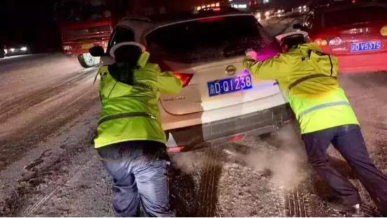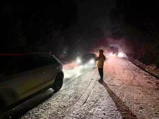 與游客們歡快地“與雪共舞”不同,元旦節期間武隆交巡警可謂是帶著使命奮戰在冰天雪地一線。他們分布在各大交通要道,現場指揮車輛按照規定的線路行駛,避免因超車、占道等行為造成車輛擁堵。同時,幫助游客解決車輛打滑等問題,對各類交通事故進行現場救援。