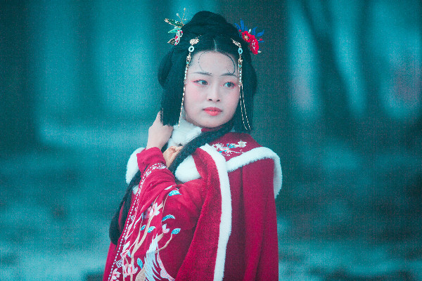粉妝玉砌恍若人間仙境,白雪映襯下的漢服美女格外“美麗凍人”。祈福儀式結束后,漢服愛好者舉行了冰雪游園活動,他們紛紛選擇以冰雪作為背景,拍攝雪景大片。漫步于雪中,隨風溫婉自若,不管是清冷仙俠風,還是小家碧玉風,或是瀟灑颯氣風,在仙女山壯觀雪景中分分鐘也能拍出攝影大片。