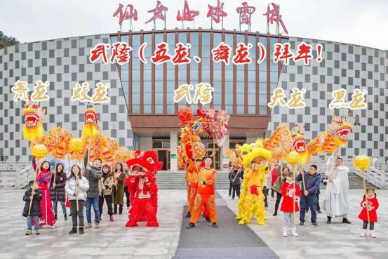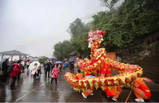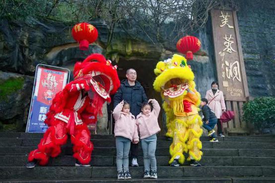 舞龍舞獅開門大吉。大年初四(2月15日),寓意吉祥的五條巨龍(武隆、天龍、青龍、黑龍、蛟龍)在武隆芙蓉洞景區盡情飛舞,為廣大游客帶來一場精彩紛呈的新春民俗盛宴。