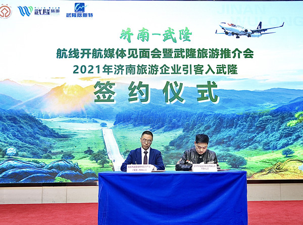 據武隆區委常委、副區長蘇惠勇介紹,武隆是全國少有的同時擁有“世界自然遺產”“國家5A級旅游景區”“國家級旅游度假區”“國家全域旅游示范區”四塊金字招牌的地區,生態旅游資源特別豐富,仙女山、天生三橋、芙蓉洞等景區享譽中外,被稱為“世界喀斯特生態博物館”。全域最低海拔160米,最高海拔2033米,屬亞熱帶季風性濕潤氣候,立體氣候明顯,森林覆蓋率達65%以上,空氣優良天數常年保持95%以上,是名副其實的“中國森林氧吧”,每年吸引3000萬人次以上的游客到武隆觀光度假。仙女山機場海拔1700米,緊鄰武隆仙女山5A級景區,是全國少有的可直達景區的機場,可以直航空客A320、波音737等機型的飛機,是典型的旅游機場。濟南至武隆航線的開通,必將進一步密切兩地聯系,為深化魯渝協作交流打下堅實的交通基礎,促進武隆在活動現場,武隆區文旅委向山東市民推介了武隆優質的旅游資源,重慶市武隆喀斯特旅游產業(集團)有限公司推出4條精品旅游線路產品,并同重慶環亞國際旅行社濟南分公司簽訂了合作協議,為山東市民出游武隆提供更便捷服務。高質量發展邁上新臺階。