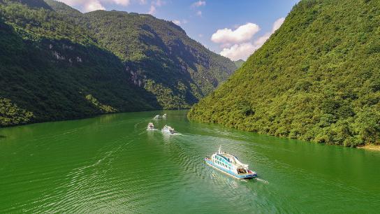閨藏深山人未識,一朝聞名天下驚。水送山迎入芙蓉,一川游興畫圖中。芙蓉江景色秀麗,山青、水秀、崖雄、峰奇、峽幽、澗深、瀑飛、泉涌,天作畫廊,加之水鳥飛舞,鐘乳垂掛,飛泉流瀑,真可謂是“貌似漓江,勝似三峽”。