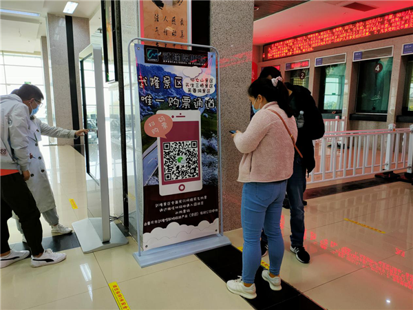 游客可以直接微信掃描二維碼購票或者在機器上訂票,所以清明節期間盡管游客較多,但游客接待中心依然可以有序運行,沒有出現擁堵滯留情況。