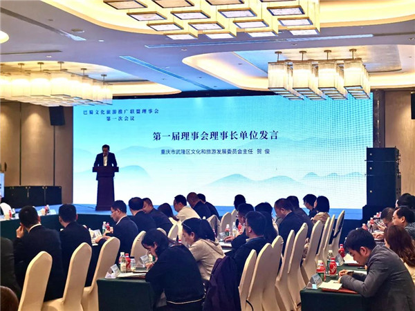 會議宣讀并表決通過了《巴蜀文化旅游推廣聯盟章程(草案)》及聯盟理事會理事、理事長、副理事長、秘書長單位建議名單,武隆區文化旅游委黨組書記、主任賀俊代表第一屆理事會理事長單位發言,并宣讀《巴蜀文化旅游推廣聯盟宣言》。