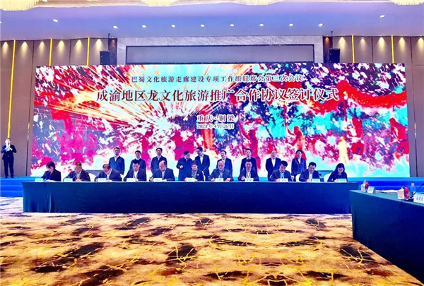 會上舉行了成渝地區龍文化旅游推廣合作協議簽訂儀式,在兩地媒體和文旅代表的見證下,四川省文化和旅游廳、重慶市文化和旅游發展委員會鄭重簽訂了成渝地區龍文化旅游推廣合作協議。