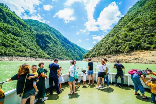 這里原生態保護良好,江水碧綠發藍,兩岸蒼勁樹根千姿百態、飛泉流瀑。乘坐游船蕩漾江上,仿佛走進了畫中,生活、工作的壓力,頃刻間被一掃而空。