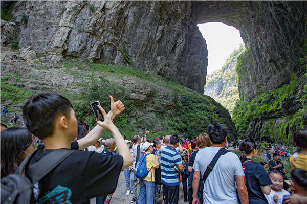 好天氣助推出游熱情,五一長假第二天,在做好疫情防控安全的前提下,武隆各大景區陸續迎來客流小高峰。各景點游人如織、井然有序。特別是仙女山、天生三橋、龍水峽地縫景點人氣較旺,成為游客們的首選旅游地。