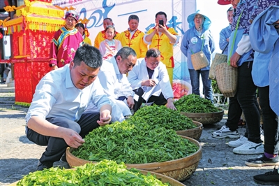 農歷三月,春光和煦、新茶吐翠,正是春茶采摘的最佳時節。開春采摘的第一茬芽尖,芽葉細嫩,色翠香幽,味甘形美,是茶中極品。5月1日,武隆仙女紅春茶開采季開幕式在白馬山貢茶園舉行,茶園內彩旗飄揚,茶香芬芳。