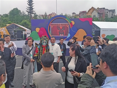 當天,嘉賓們先后參觀了武陵山片區各省市區縣的旅游風光、非遺文化、文創產品等,在一幅幅優美的圖片面前,大家掏出手機不停拍照留念。在武陵山片區民俗風情板塊,以部落式呈現的中心展區、湖北展區、湖南展區、重慶展區、貴州展區等區域,酉陽的土酒、綦江農民版畫、榮昌的折扇、湖南的莓茶、貴州的銀飾等武陵山片區各具特色的民俗產品,琳瑯滿目、應有盡有,讓人目不暇接,吸引許多市民駐足了解、購買,展品中還有苗族刺繡、蠟染等文創產品,讓人愛不釋手。在展會場地中間的舞臺上,歌曲、相聲、雜技、川劇變臉等豐富多彩的表演輪番上演,尤其是非遺傳承人張麒麟帶來的木葉吹奏,更是迎來大家的陣陣喝彩。
