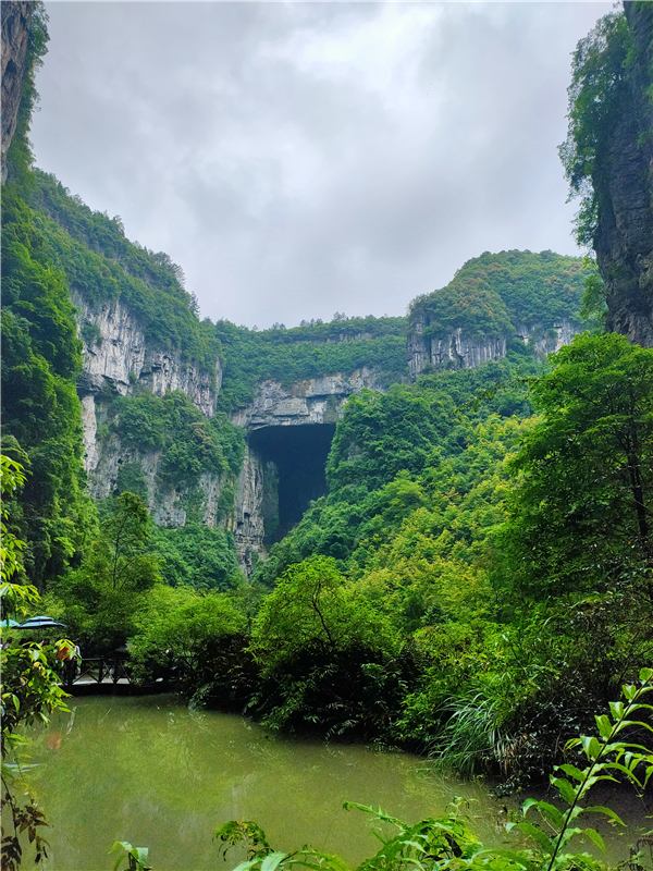天生三橋,國家AAAAA級景區,世界自然遺產地,景區內林森木秀、青峰翠嶺、懸崖萬丈、飛泉流水,一派雄奇、蒼勁、神秘、靜幽的原始自然風貌,山、水、瀑、峽、橋共同構成一幅完美的自然山水畫卷。你可乘坐景區80米的室外高層觀光電梯下到谷底,恍如時空流轉,目之所及斑駁的崖壁間猶如電影般無聲的向你訴說著這里億萬年的滄海桑田。你可以站在天龍橋底閉上眼睛傾聽橋底下的鳥語空鳴;你也可以站在天龍天坑仰望蔚藍的天空,暢想天外的世界;你還可以在青龍橋底手握天涯明月刀,來一場武俠江湖;你甚至可以在回眸青龍橋見到自己“魚躍龍門”奔赴可期未來!