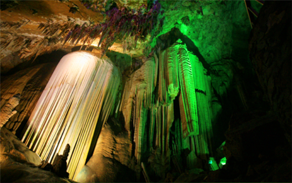 芙蓉洞,一座斑斕輝煌的地下藝術宮殿。是喀斯特世界自然遺產保護地、中國國家5A級旅游區、中國國家重點風景名勝區、中國國家地質公園。也是世界唯一被列為世界自然遺產保護地的洞穴。洞內形態各異的鐘乳石無處不讓人感受到大自然的神奇造化。你可以見到猶如千萬只利劍扎向大地而被定格在一瞬間的“萬劍掛壁”;你可以見到億萬年的流水瀑布雖然被定格,但如果配上流水聲你會真的以為它就是瀑布的石瀑;你可以看到羞于仔細觀賞的“生命之源”和清澈見底的池水里那些漂亮得像珊瑚而又不是珊瑚的鐘乳石,總之大千世界就是這么任性,無奇不有!