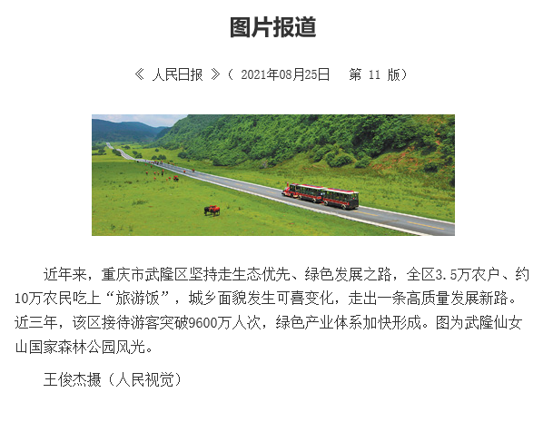 8月25日,《人民日報》刊發(fā)了一張仙女山美景主圖,展示我區(qū)堅持走生態(tài)優(yōu)先、綠色發(fā)展之路的成果。