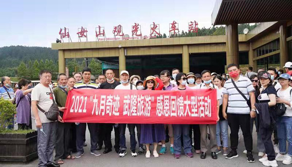 據悉,武隆景區為回饋廣大游客,促進當地旅游發展,特別推出了“九月奇跡 感恩回饋季”的主題活動,通過“‘九月奇跡、武隆旅游’感恩回饋 ——‘金九銀十’”等系列活動向廣大游客展示武隆美景。而這400余名來自重慶的游客也正是被此活動吸引,專程來武隆賞秋,仙女山國家森林公園是他們此次旅行的第一站,明日(9月13日)將前往第二站白馬山天尺情緣景區。
