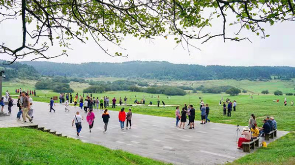 上午12點,小編看到仙女山國家森林公園景區內人潮人海,場面尤為壯觀。9月的仙女山,草原如綠毯綿延向遠方,森林如大山環繞四周。近看,綠草茵茵,遠看,森林群峰,給人一種“時時皆景,景景不同”的印象。“仙女山簡直是三步為一景,五步皆成畫”來自重慶巴南的劉先生不禁感慨。