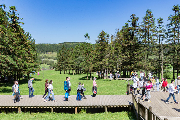 上午11點,小編看到仙女山景區內人潮洶涌,進入景區的車輛川流不息。據了解,家庭親子游成為此次中秋出游武隆的主力軍,他們大多因“仙女山最美觀光公路”慕名而來。
