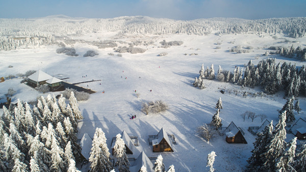 浩瀚的冬季,銀裝素裹,游人騎馬在茫茫的仙女山雪原中穿梭,感受那別樣的瑞士風光。