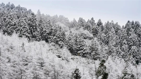 經(jīng)過一晚上的的積淀,仙女山已呈現(xiàn)一片銀色景象,草原上、森林間已被潔白的雪覆蓋,儼然已化身唯美,浪漫的冰雪童話世界。
