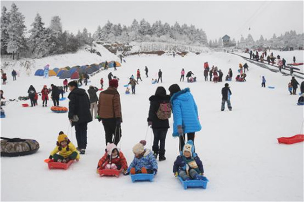 仙女山擁有西南地區最大的高山滑雪船,面積達5萬平方米,可同時容納超3000人滑雪,雪場設有滑雪橇、雪上飛碟、滑雪船等不同滑雪項目,可滿足不同喜好和不同年齡段的游客需求。