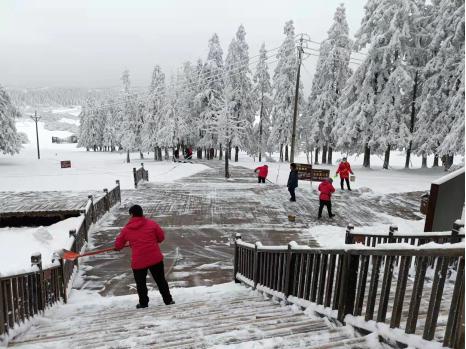 平均海拔1900米的仙女山景區,每年雪季能吸引大量游客到此賞雪滑雪。景區在全力除冰除雪保證道路安全暢通外,還在各節點準備熱水器,為游客免費提供姜湯等驅寒熱飲,同時還舉辦冰壺、打雪仗、堆雪人等各種有趣的冰雪趣味活動等著你。