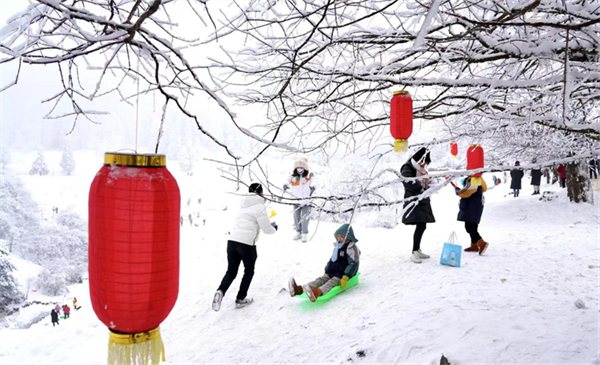 春節期間,仙女山大草原張燈結彩,節日氛圍濃厚。眾多游人打雪仗、堆雪人、滑雪、玩冰壺、滑雪船、拍照玩得不亦樂乎。此外,武隆景區為增添節日的樂趣,在仙女山、天生三橋、芙蓉洞、龍水峽地縫景區開展了“新春尋寶”“全家福”“新年心愿”等活動。活動期間,游客在以上景區收集完整的景區名字,拍照發朋友圈,即可兌換相應景區的精美禮品一份;集齊分散在各個景區的“虎”“年”“大”“吉”四字后,還有機會贏取新年超級大獎華為手機。
