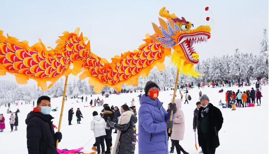 據了解,為迎接北京冬奧會,響應3億人參加冰雪運動號召,武隆景區春節期間開放了仙女山戶外滑雪場,舉辦了以“耍雪就去仙女山”為主題的冰雪趣味運動會,增加了豐富多彩的冰雪運動和舞龍等表演項目,為廣大游客帶來了與眾不同的新春文旅盛宴。