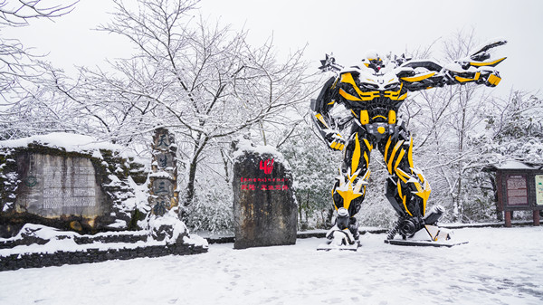 漫天的雪花清爽、松散,猶如一顆顆瑩亮的晶粒,在樹林間追逐,在山石間跳舞,填平了山林間的坎坷和崎嶇,將殘枝敗葉和寒徑小路統(tǒng)統(tǒng)埋在身下。放眼望去,整個景區(qū)玉樹瓊枝、冰堆玉砌,給雄偉壯觀的天生橋群披上了一層神秘的面紗。