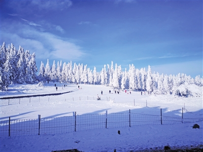 圖為陽光下的仙女山雪景。(李鵬程攝)