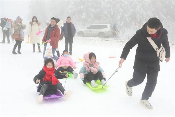 冰天雪地、天寒地凍一點沒有阻擋游客堆雪人、賞雪、滑雪、玩雪的歡聲笑語。采訪中, “服務暖心”“活動豐富”“好耍得很”成了來武游客的高頻詞。