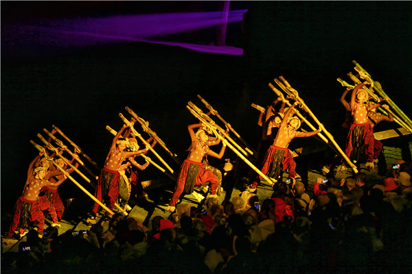 有一種堅強與生俱來,有一首情歌始終未歇。4月3日,經過三個多月的改造升級,重慶大型實景演出《印象武隆》震撼復演!從2012年4月在桃園大峽谷公演以來,《印象武隆》已累計演出2900余場,接待游客超400萬,是重慶文化旅游的一張名片。不管是鏗鏘有力的川江號子吶喊,還是情長婉轉的哭嫁低吟,或是麻辣豪爽的重慶火鍋,都是《印象武隆》帶給游客無法復制的視聽享受和精神震撼。復演在即,一百多名演員在做好防疫措施的同時排練無數次,演出每日對劇場進行全面消殺,完善防疫應急措施,只待故人來!