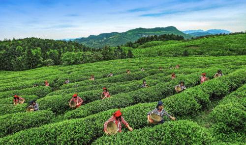 “應時飲茶最養人,春游出行正當時”,新春已至,春芽已經冒頭,正是品茗好時節。白馬山仙女紅明前茶進入采摘期,漫山的茶園翠色欲滴,寫滿了綠意,連空氣里都是清冽的茶香。海拔1300米的白馬山天尺茶區正處在重慶武隆的T字型小氣候區域中,頻繁驟變的溫差使得這里產出的茶葉內質物更為豐富,呈現出獨特的香氣。