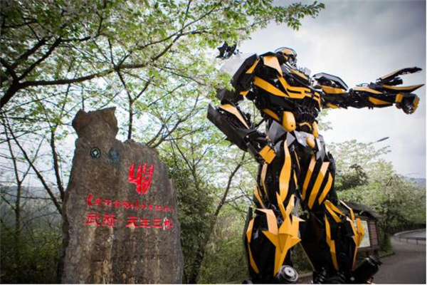 天生三橋景區,大自然鬼斧神工之杰作,其壯麗的自然風光使之備受電影大片的青睞,已經成為《變形金剛4》及《滿城盡帶黃金甲》的拍攝地。清明節期間,天生三橋景區野生梨花、櫻花次第綻放,滿園春色,變形金剛在春花的映襯下也展現俠骨柔情的一面。景區內玉樹蔥蔥、鳥語花香下的三橋夾兩坑壯觀景色,是相機無法拍攝出,僅能親眼看到用心感受的磅礴氣勢。