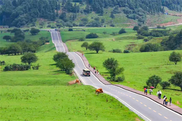 仙女山國家森林公園是國家AAAAA級景區,位于重慶市武隆區,以其江南獨具魅力的高山草原、南國罕見的林海雪原、青幽秀美的叢林碧野景觀而譽為“東方瑞士”。仙女山小火車道也被譽為仙女山最美公路——仙女山大草原生態路,始建于2009年,全長4.5公里。高低起伏的公路向遠方延綿,最后消失在盡頭。道路兩旁則是綠草茵茵,與悠閑行走、吃草的牛馬共同形成一幅愜意溫馨的畫面。