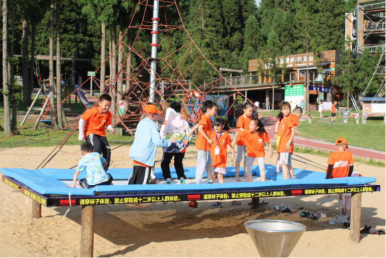 其中,在樹頂漫步景區,無論是高空的攀樹、速降、棧道闖關、云端旋降,還是樹底的溜索、秋千、蹦床、轉盤、獨木橋……40多個無動力設施,在研學導師的指導下,孩子們樂在其中、流連忘返,充分釋放出孩子愛玩好動的天性。