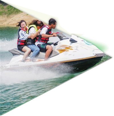 近日,重慶首個AP水上探險公園在芙蓉江“清涼”上線啦!游客朋友們可在寬闊的湖面上挑戰水上運動,享受風馳電掣的速度與激情,盡情享受夏日時光。