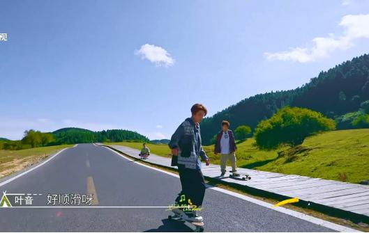 在仙女山最美公路上,葉音玩性大發(fā),偷懶式“坐滑板”“躺滑板”畫風奇特;王晨藝則化身滑板少年,在高低起伏的公路上滑行又帥又酷!
