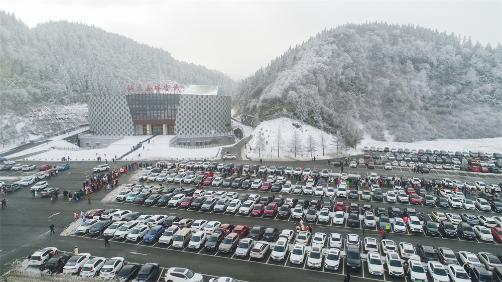 整齊劃一的車流、人從眾般的耍雪游客,航拍游客賞雪滑雪場面相當壯觀!在仙女山大草原、滑雪場,游客通過玩雪打雪仗、賞雪堆雪人、拍雪景滑雪的方式歡歡喜喜迎新年,景區內到處呈現出人聲鼎沸、熱鬧非凡場面。