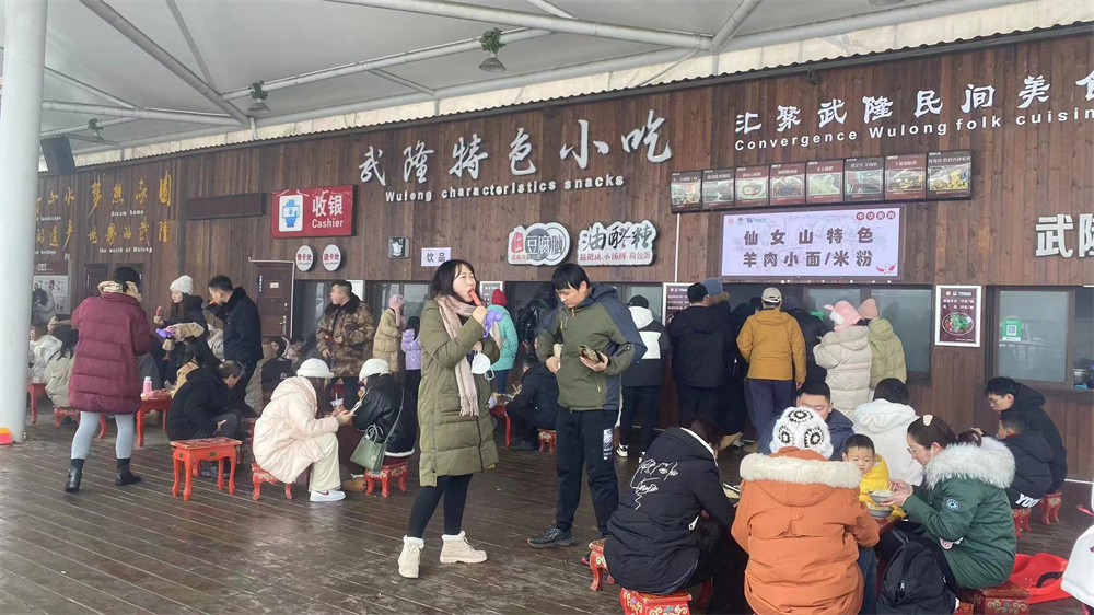 滑雪賞雪、美食美景一個都不能少,在仙女山戶外滑雪場美食區同樣人氣爆棚,羊肉粉、重慶小面、特色燒烤等美味小吃匯聚,暢玩滑雪玩雪后吃點特色美食,暖心又暖胃。