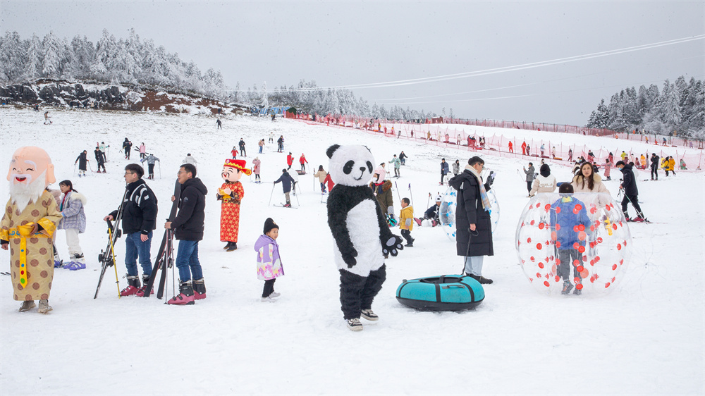 比賽場地外,仙女山一系列精彩紛呈的冰雪體驗活動,正如火如荼的舉行。應景仙女山冰雪美景,優美歌聲吸引眾多游客現場圍觀,特別是小歌手謝可嘉的童真聲線尤其反響熱烈,贏得游客們陣陣掌聲。