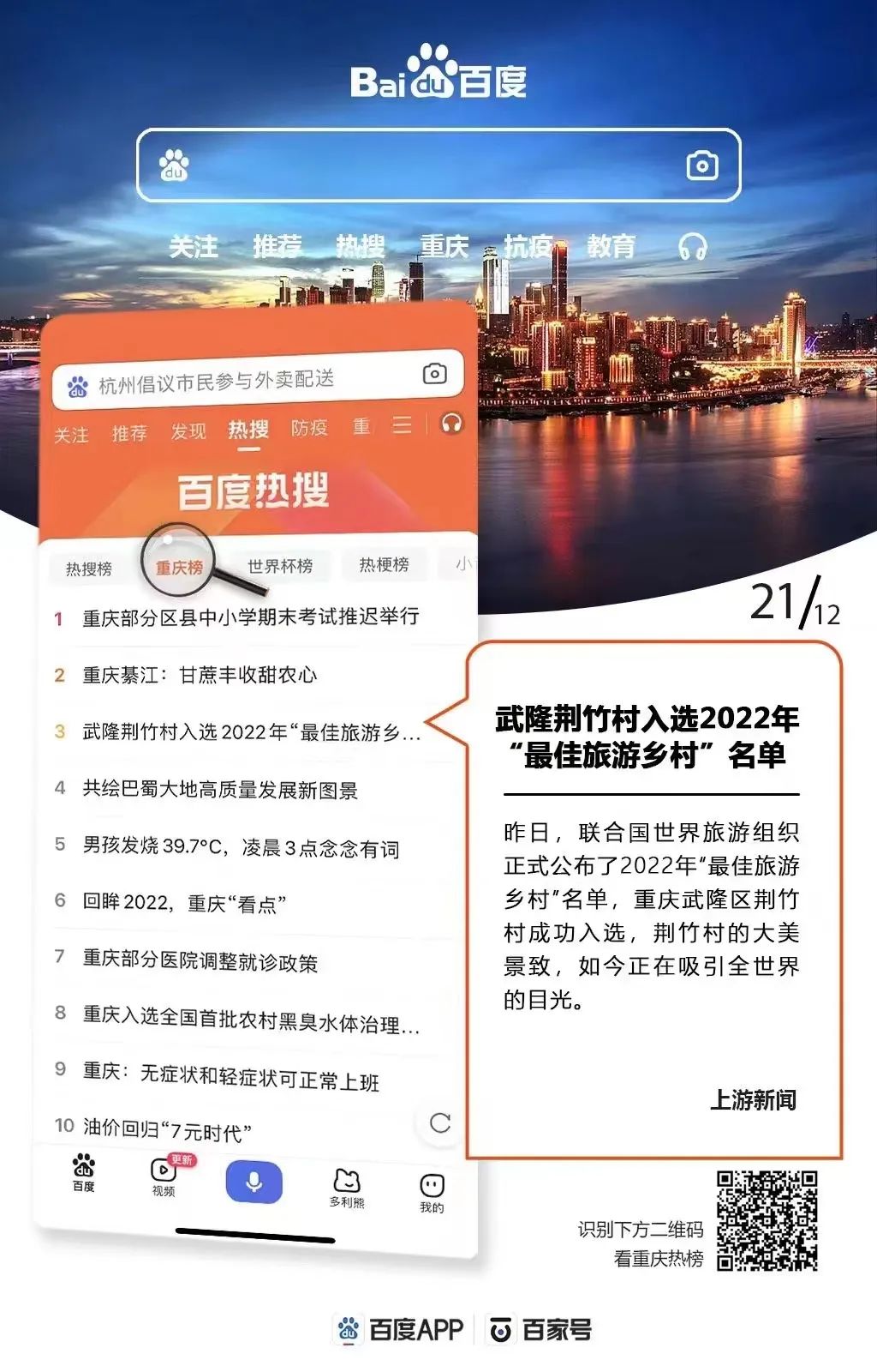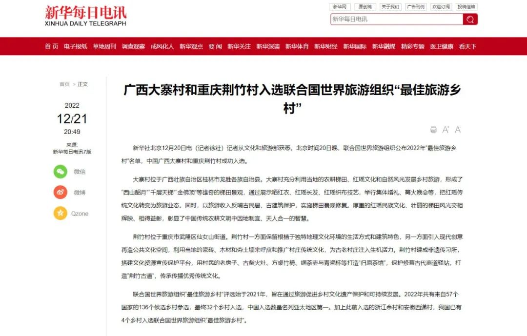 今年國內共有2個鄉村入選,全國獲此殊榮的也僅有4個鄉村,重慶武隆仙女山荊竹村、浙江安吉縣余村、安徽黟縣西遞村、廣西龍勝縣大寨村,隨著聯合國官網正式官宣,仙女山荊竹村迅速吸引了全球的目光。