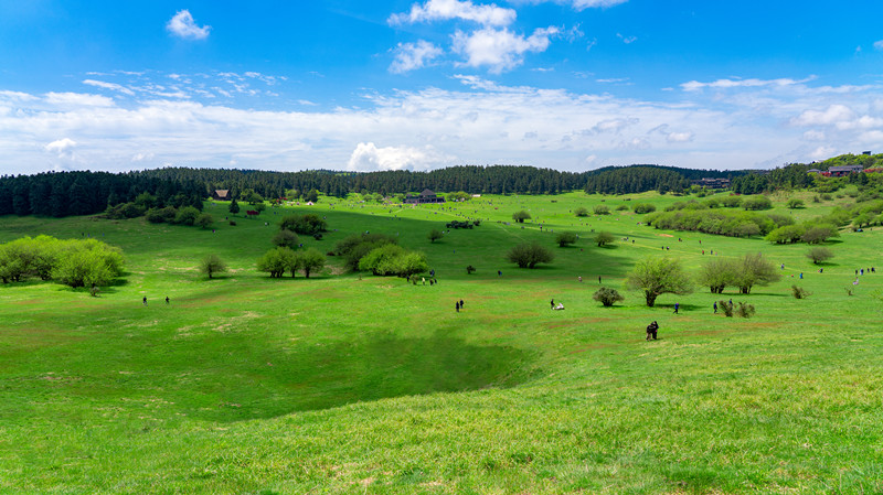3月的重慶仙女山,春回大地,萬物復蘇,春意盎然。仙女山擁有十萬畝大草場,綠茵的春季,仙女山被此起彼伏的山丘、濃濃淺淺的綠罩著,朵朵盛開的野花,簇擁成團,天藍得透亮、白云肆意的變換著各種姿態,成群牛羊在明媚的陽光中悠閑地倘佯于原野間。
