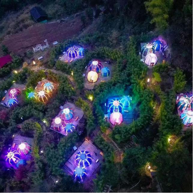 坐落于萬峰吶溪原鄉景區內,位于火爐鎮北部保峰村和巖峰村,距離國家5A級景區仙女山僅18公里。這里隱匿萬峰林海深處,是都市人的“秘密花園”。這里有以十二星座+仙女座命名的13間星空宿,獨立的大泡泡帶著并列的小泡泡,入住后,專屬于房客的泡泡星座燈就會點亮,仰望星空,倚山而眠,可在此感受專屬于武隆的自然浪漫。