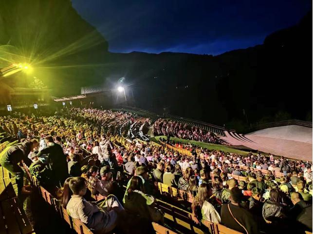 在大型山水實景演出《印象武隆》演出現場,悲壯雄偉的川江號子、催人淚下的哭嫁、火辣辣的重慶火鍋、輕巧靈活的抬滑竿等演出節目精彩上演,為現場觀眾再現了具有巴渝地區傳統文化特色的生活勞動場景,場場爆滿、座無虛席!