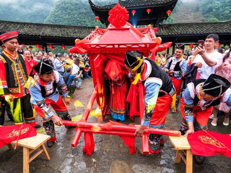 犀牛古寨原住民是土家族,至今傳承著具有濃郁民族特色的傳統婚嫁習俗,2023年5月19日武隆區將舉辦仙山為盟·白馬為誓520犀牛寨土家族集體婚禮活動。在“世外桃源犀牛寨·中國醉美古村落”、在被譽為“徒步者天堂”的沿滄河畔、在千年土家吊腳樓上參加最浪漫土家族集體婚禮,一定會讓每一對新人終身難忘、幸福滿滿。