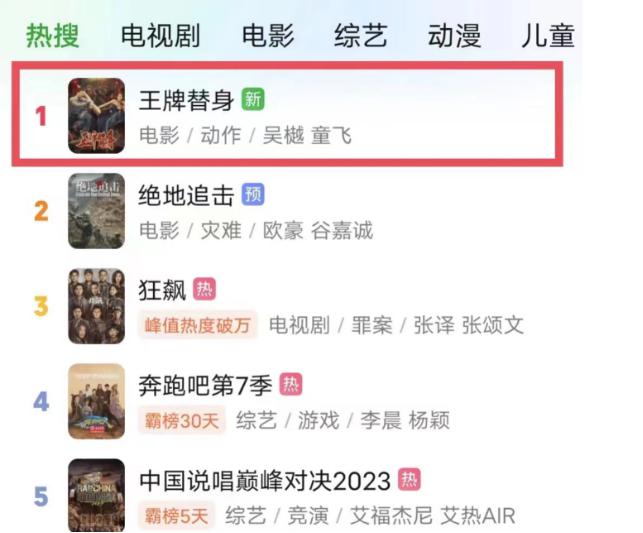 5月26日下午16:00,由功夫硬漢吳樾、“晶女郎”童飛、相聲演員孫越,網絡達人叨叨、唐人等,共同演繹的動作搞笑電影《王牌替身》全網首播,打斗精彩、笑料不斷,《王牌替身》一播出就上榜愛奇藝站內熱搜總榜/電影榜第一。作為該電影的唯一外景拍攝地,武隆仙女山、白馬山、懶壩等美景元素更是為該電影增添了不少看點。