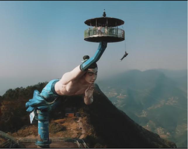 在電影中,硬漢吳樾前期看似“廢柴”,為救被綁架的女兒超強戰力附身,逆風翻盤超燃虐渣。特別是在白馬山飛天之吻那場戲,吳樾被綁架,懸掛在1300米高的烏江懸崖邊上,武力值爆表的他上演極限自救,驚心動魄的場面成為該電影的一大看點。