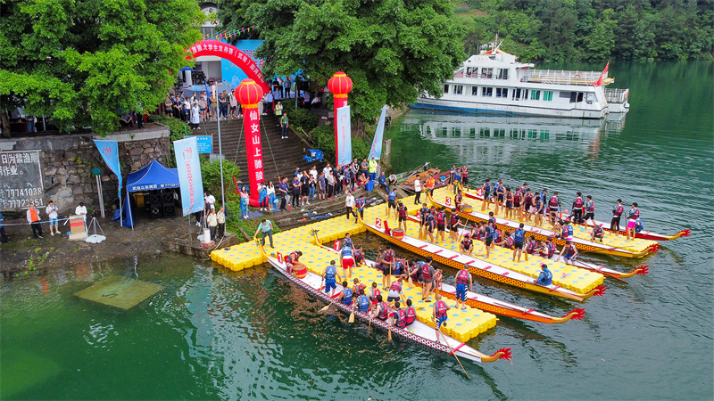 賽龍舟是中國端午節的重要習俗之一,深受人們喜歡。在今年的龍舟錦標賽當中,來自樂山市、遂寧市、合川區、萬州區、大足區、高新區等14支代表隊,378名運動員將在芙蓉江上乘風逐浪、擊水奮楫,體驗中華龍舟文化。