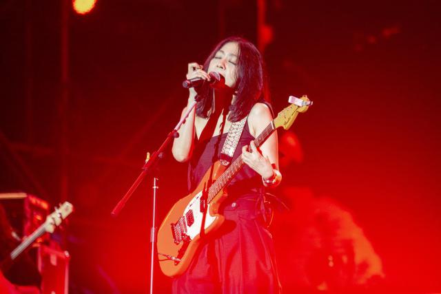 晚上7點(diǎn)20分,詹雯婷以一身黑色連體褲和白色外套閃耀出場(chǎng),一出場(chǎng)便以一首傳唱度極高的《融雪》引爆全場(chǎng)。《焚風(fēng)》《河畔》《預(yù)言石》詹雯婷不停歇,一連帶來(lái)了多首經(jīng)典歌曲。特別是《決愛(ài)》、《蒼穹》、《我們的愛(ài)》、《Lydia》一首首耳熟能詳?shù)母枨徽馋╂每侦`的聲音而又極具爆發(fā)力的聲線演繹得淋漓盡致,在舞臺(tái)上詹雯婷聲息氣場(chǎng)全開(kāi),為觀眾帶去了一場(chǎng)極致視聽(tīng)享受。《我們的愛(ài)》更是引發(fā)全場(chǎng)觀眾大合唱,現(xiàn)場(chǎng)歌迷們吶喊尖叫聲不斷!