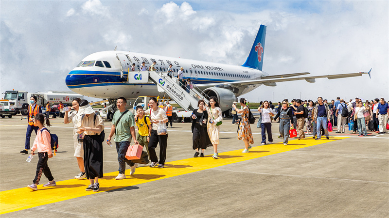 游客有序下飛機
