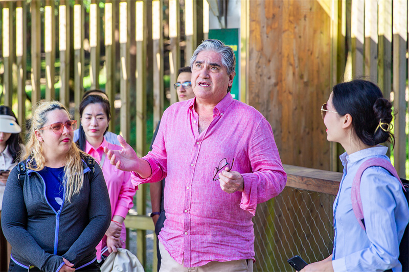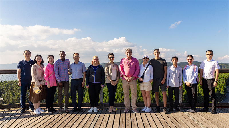 9月6日,拉丁美洲駐華大使代表團一行首先實地考察了仙女山景區。被譽為“南國第一牧原”、“東方瑞士”的仙女山國家森林公園綠草如茵、空氣清新,特別是引自歐洲的森林互動體驗項目——樹頂漫步景色尤其旖旎。代表團們穿越森林深處的空中棧道,站在41米高的森林之眼上面,俯瞰整個仙女山,美景如畫盡收眼底。
